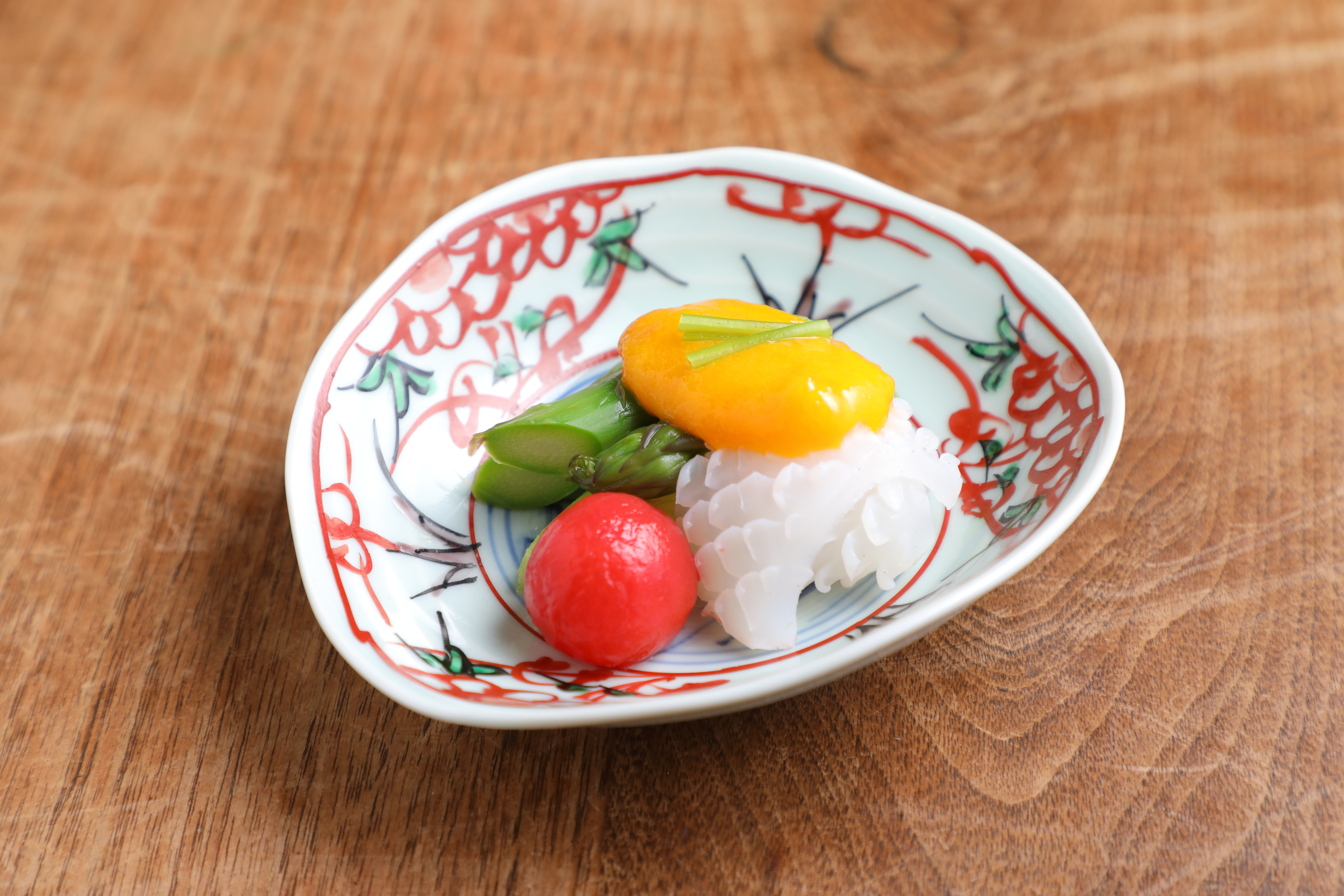 アスパラガスとヤリイカの黄身酢がけ